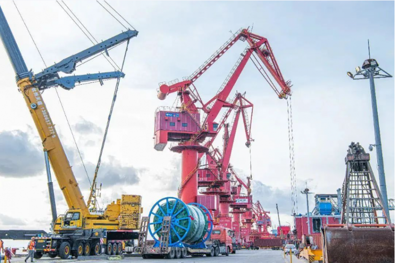 各项准备工作就绪后,随着一声号令,巨大的聚酯缆在工厂缓缓吊装到运输车上,交警前面警车开道、沿线关键路口把守,全程保驾护航,装载着“定海神针”的运输车队安全到达头门港码头。头门港码头上600吨汽车吊提前固定位置,调试完毕待命。在头门港码头工作人员和四兄绳业总经理李茂巨的共同指挥下,聚酯缆依次有序吊装上船,随着最后一根聚酯缆的吊装完成,本批国产系泊聚酯缆运输吊装任务圆满完成。