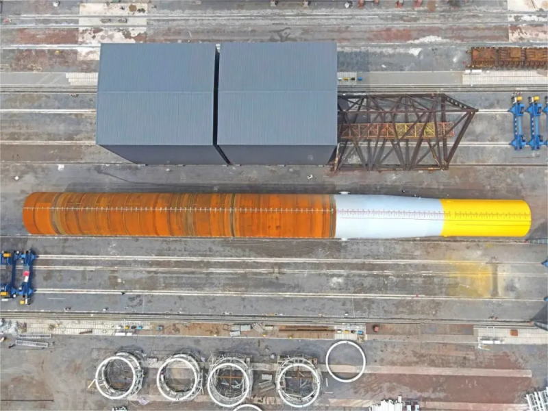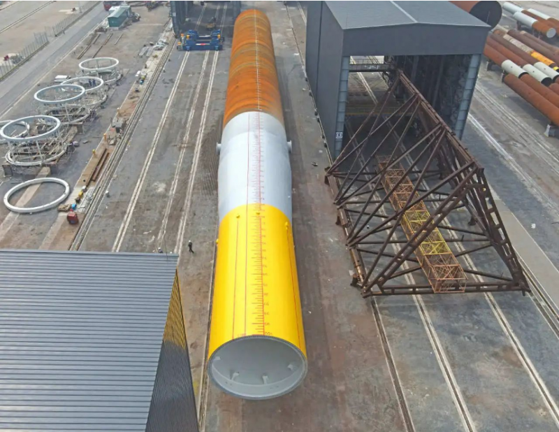 目前,基地已完成国内最大的风电钢结构制造车间、单桩整桩涂装车间等主要生产场地建设,产品制造流程严格按照国际化标准设计,可制造最大直径15m、单重4000吨规格的单桩与大型超高导管架等产品,并于2023年5月开始试生产。在2024年下半年,钦州基地将完成6条单桩生产线建设,可年产海上风电单桩60根,年产能可达30万吨,将为国家的清洁能源产业发展,实现“碳中和、碳达峰”贡献力量!