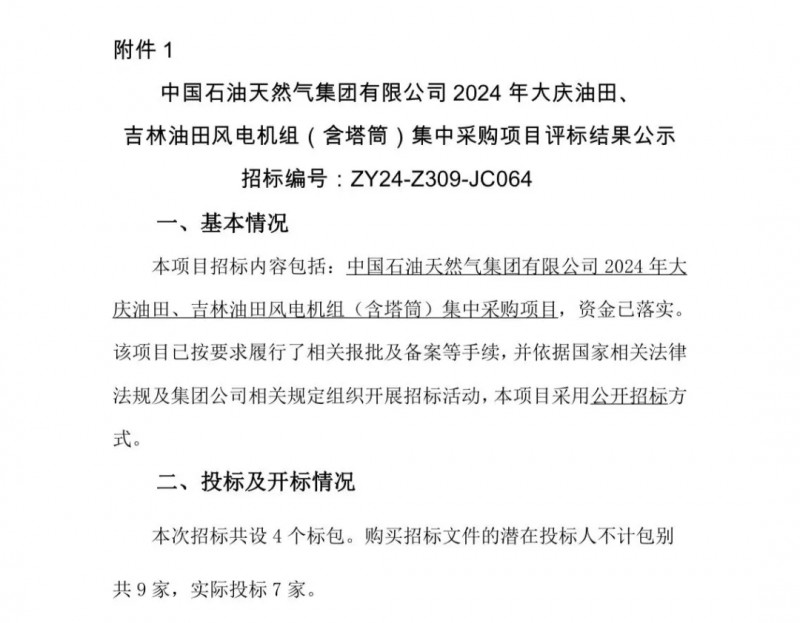 近日,中国石油天然气集团有限公司2024年大庆油田、吉林油田风电机组(含塔筒)集中采购项目评标结果公示,电气风电中标大庆林甸150MW和大庆喇五变电站区域智能微电网试验工程12.5MW项目。