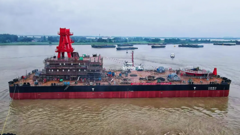 近日,由三航局投资建造的110米架高旋转式打桩船“三航桩22”号在江苏扬中吉水。