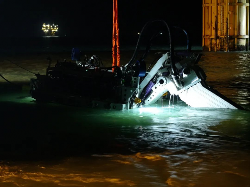 针对地质硬度高、坡度大的难题,金牛座机器人展现出了独特的优势。其特制冲射臂和超高功率,配合出水口1500Kpa以上的强大射流和履带拖曳力,轻松应对了坚硬的海底地质,实现了高效挖沟与铺缆作业。即便在如此恶劣的地质条件下,金牛座依然能够保持每小时约350米的施工速度,且全程埋深达到2.5米以上。