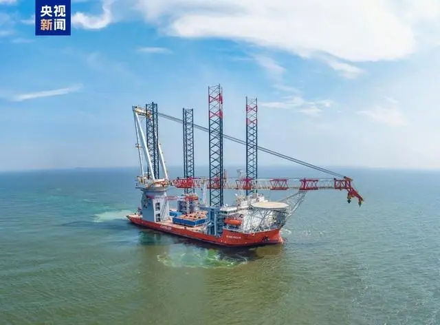 今天(8月15日),在江苏启东长江码头,由启东中远海运海工建造的新一代自升式海上风电安装船完工。