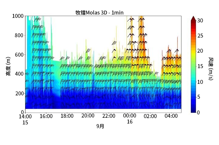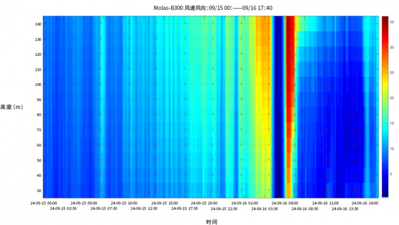 探测期间,我司部署的测风激光雷达运行状态良好,承受住了台风过境的考验,并探测到了丰富的台风过境实时立体观测信息。台风登陆期间数据结果被台风所《台风外场试验动态快报》引用。在台风登陆的全探测过程中,我司Molas 3D雷达于9月16日上午10时57分成功观测到陆家嘴上空45.8m/s的最大水平风速,填补了陆家嘴区域的关键业务指标。