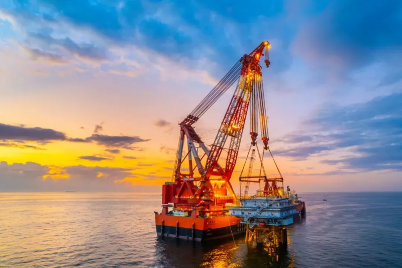 防城港海上风电示范项目位于广西防城港南部海域,是我国在建单体装机容量最大、国内首个零补贴的平价海上风电项目。项目分三个标段建设,其中一标段建设49台风力发电机组,装机容量416.5兆瓦。项目于2023年6月30日开工建设,2024年8月19日完成主体工程建设,较原定工期提前2个多月实现全容量并网发电,成为广西第一个下海测风、第一个核准、第一个开工、第一个并网、第一个全容量投产的海上风电标段工程。