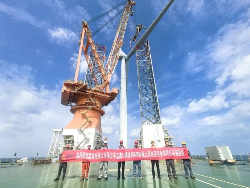 国家电投半岛南U1场址二期海上风电完成风机吊装