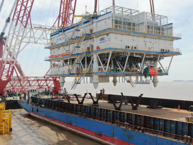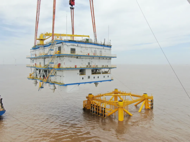 据了解,作为上海“十四五”能源转型的重要工程,该项目自去年11月份正式开工以来,已经完成了36根桩的沉桩工作和两台风机的安装工作,后续还将进行海缆敷设以及剩余34台风机的安装工作。此次海上升压站的正式吊装为后续风机并网发电打通了核心环节。