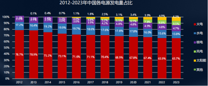 2024年全球新增风电装机113GW,其中中国为79.82GW,占比超过70%;截至2024年底全球风电累计装机突破1200GW,中国占43%以上。从2009年起到2024年,中国风电新增装机连续16年位居全球第一,从2010年到2024年,中国风电连续15年累计装机位居全球第一。2023年我国风电发电量8858亿千瓦时,是我国第三大供电来源,在中国各电源发电量占比为9.5%,仅次于火电和水电。