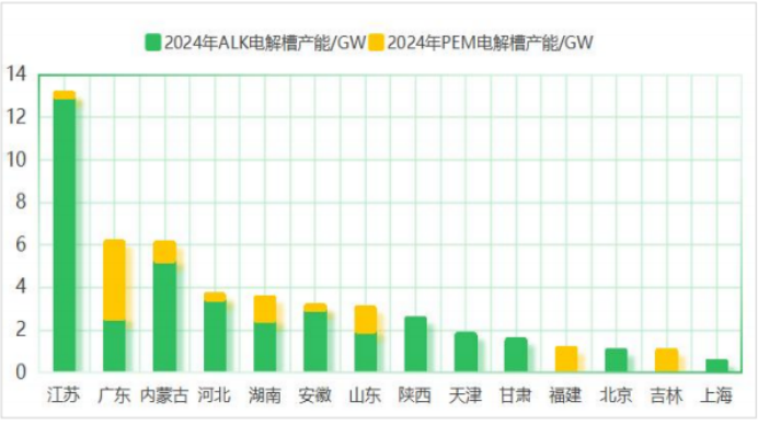 氢风协同不仅能降低区域弃风率,提高可再生能源利用效率;同时也能带动风电装备、氢能装备及相关产业链落地,为地区创造更多的就业机会和经济增长点。截至2025年4月底,全国发布的可再生能源制绿氢项目中,风力发电占比超过75%,是绿氢制备的主要电力来源。近几年以内蒙古为代表的西北风光资源大省加快推进本地能源资源与氢能产业协同,通过可再生能源制氢外送或者就地合成绿氨、绿色甲醇等产品外送,将资源优势转化为产业优势和经济优势。2024年内蒙古依托可再生能源资源优势吸引氢能装备企业落地,其中电解槽装备年产能超过了6GW,产能规模在全国中排第三,超过了很多氢能产业先行区。