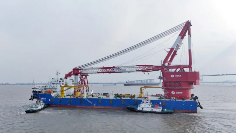 近日上海振华重工集团为中国电建设计和建造的新一代全球海洋工程安装船3600吨自航式全回转起重船“电建志高”号亮相三峡阳江青洲海上风电场顺利完成定位绞车系统锚泊试验及海上作业首吊