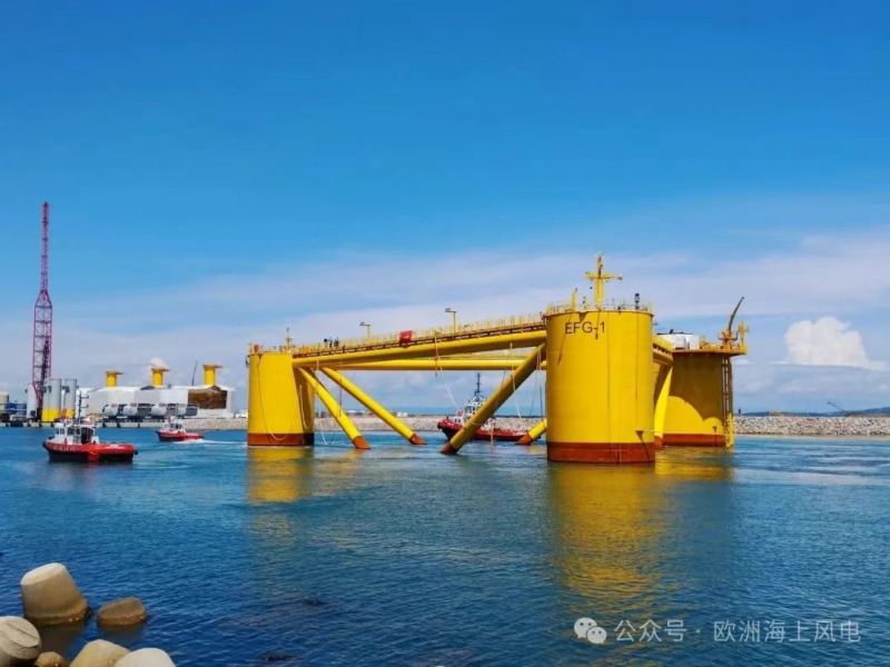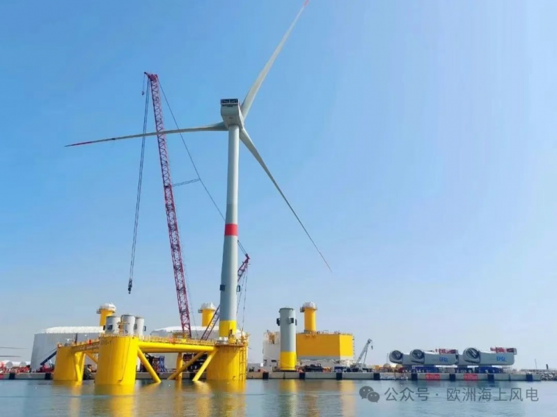 近日,法国EFGL漂浮式风电场的首台10MW风机组装完成,正式出海,这是全球首台单机容量达到10MW的漂浮式风机。