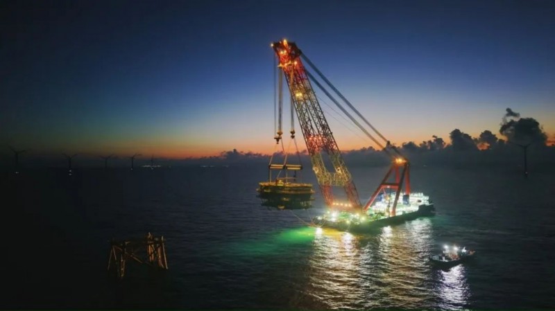 8月17日20时18分,在浙江温州苍南东部26公里外的碧波之上,一座重达2350吨的钢铁“动力心脏”精准就位——华润电力苍南1#海上风电二期扩建工程项目海上升压站上部组块顺利完成吊装,与一期海上升压站交相辉映,形成“双子星”布局,项目实现在原场址海域不变的情况下,总装机容量由400兆瓦提升至600兆瓦。