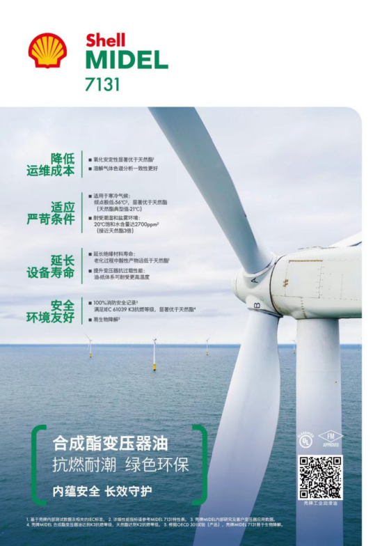 面对“十五五”海上风电装机的新增长,行业在大型化、规模化、智慧化和深远海的大趋势下,也面临着运维新挑战。为此,壳牌在本次展会重磅推出了壳牌MIDEL 7131电气绝缘油。