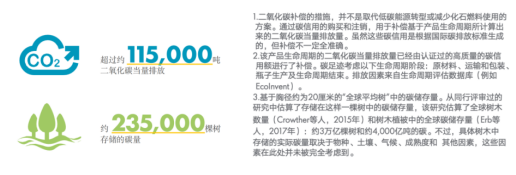 壳牌为风电机组打造了 “一站式绿色润滑解决方案”,通过碳信用对风电专属润滑油产品从生产、运输、销售使用的全生命周期产生的二氧化碳进行抵扣。从2021年到2025年6月31日,通过碳信用额度,共计补偿超过约115,000吨二氧化碳当量的排放2,相当于大约235,000棵树中储存的碳量3。