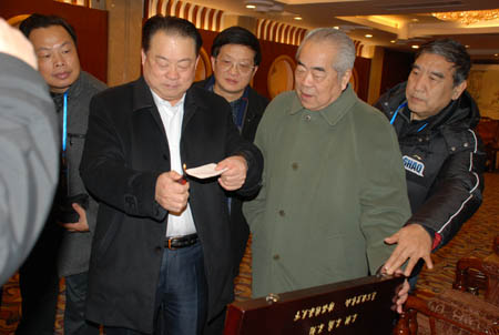 朱玉国同志在北京大学为当代着名书法家、画家范曾先生现场演示高档宣纸的高效阻燃性、防火性