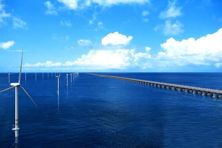 上海东海大桥100兆瓦海上风电场是我国第一个海上风电示范项目。由中国大唐集团公司、上海绿色环保能源工程有限公司、中广核能源开发有限责任公司、中电国际新能源控股有限公司四家公司按28%、24%、24%、24%的比例共同出资建设。