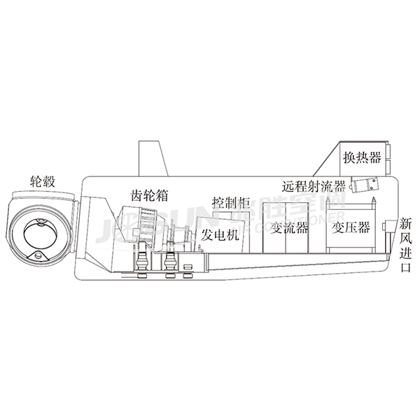 为了防止盐雾和雨水的侵蚀,海上风力发电机通常将发电机、变流器、变压器、齿轮箱、冷却柜、控制柜等主要发热设备集中放置于封闭机舱内,虽然各主要发热部件均采取了相应的内部冷却措施,如循环液冷将热量传递到舱外,但仍有部分热量不可避免通过结构传热面传入机舱,使得舱内空气温度升高,尤其在夏季恶劣工况下,通过外部太阳辐射经舱体传入机舱的热量,会进一步增加机舱的热负荷,如不采取有效的热平衡措施,会使得舱内局部区域热量积聚过多,导致温升过高引起系统运行故障。