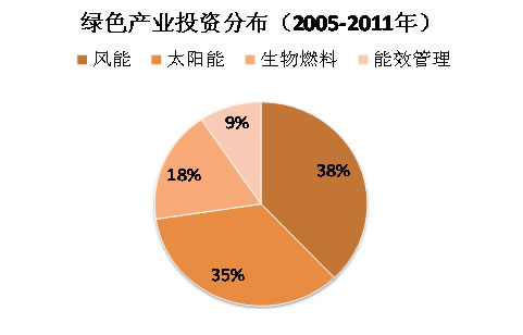 2010年,绿色产业投资同比增加51%,达340亿美元。其中,风电产业吸收了近50%的投资,45亿美元主要投资给中小项目。2011年,美国清洁能源投资较2010年增长42%,达到481亿美元,位列G20国家之首。