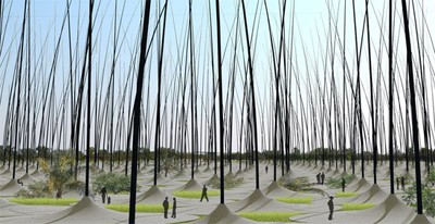 每个风力茎杆顶端都有一个LED灯,当风流吹拂时就会发亮,当处于强风流状态下将变得更加明亮。Atelier DNA公司预计风力茎杆将表现得更加自然,在空中风流吹拂下振动。
