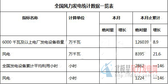 1-8月,全国6000千瓦及以上电厂发电设备容量为126039万千瓦,其中,风电8395万千瓦,同比增长21.6万千瓦。