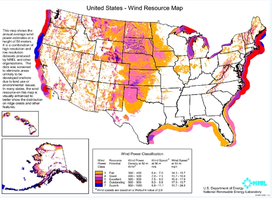 美国风带,横穿大平原,从北达科他州绵延至德克萨斯州,是这个星球上最大的风能资源所在。但是它距离美国主要的人口中心很远,所以需要运输线路将风能从平原运输至城市