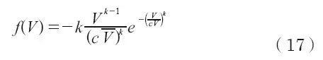 式中F是风速V的累积分布,其概率密度f(V) 由式(17)给出: