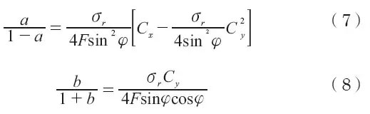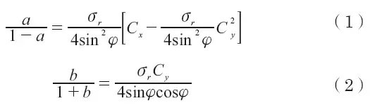 式中,σr—局部实度,φ—入流角,Cx—叶素法向力系数,Cy—叶素切向力系数。